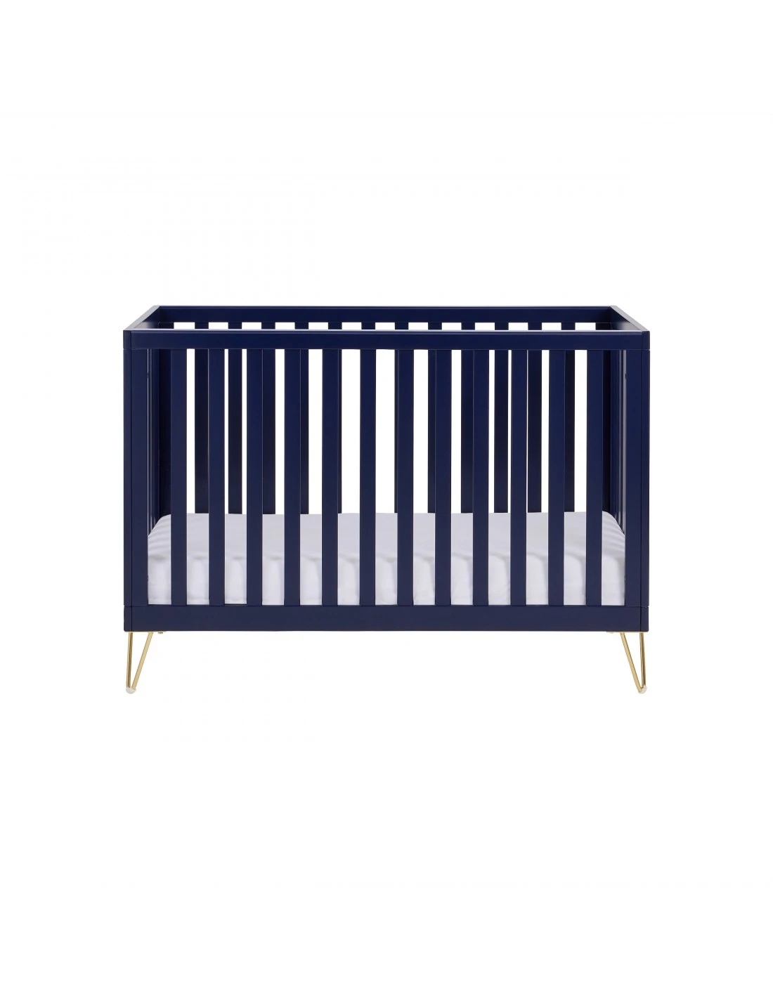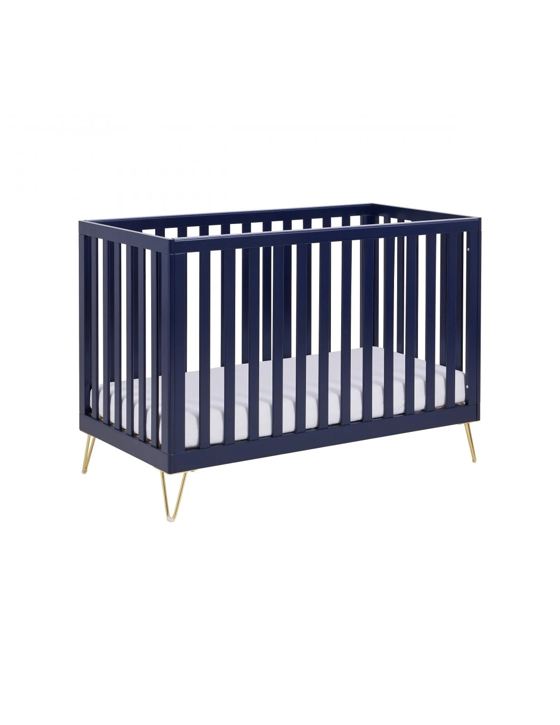 The Scandi-inspired cot bed has been stylishly designed with retro hairpin legs.