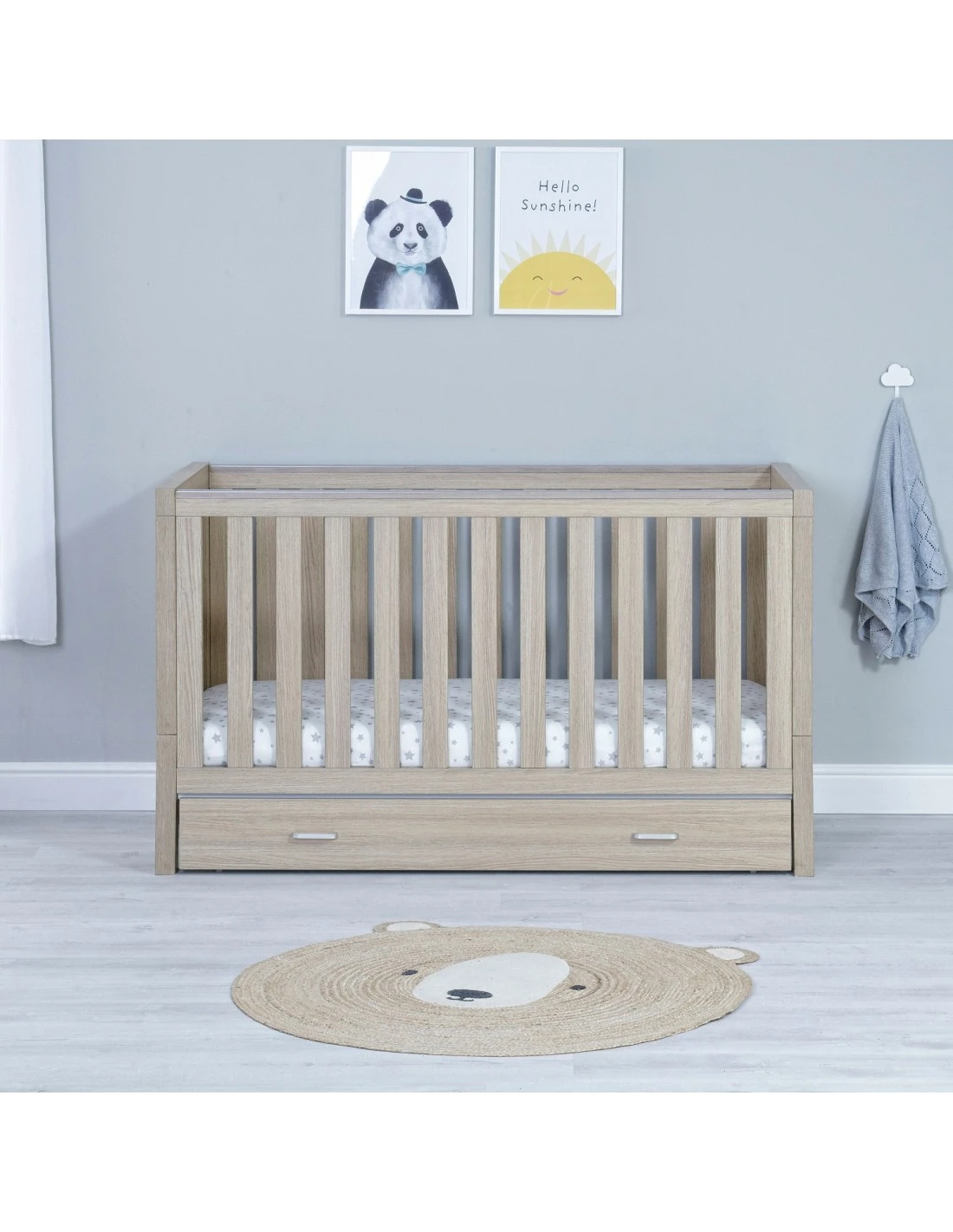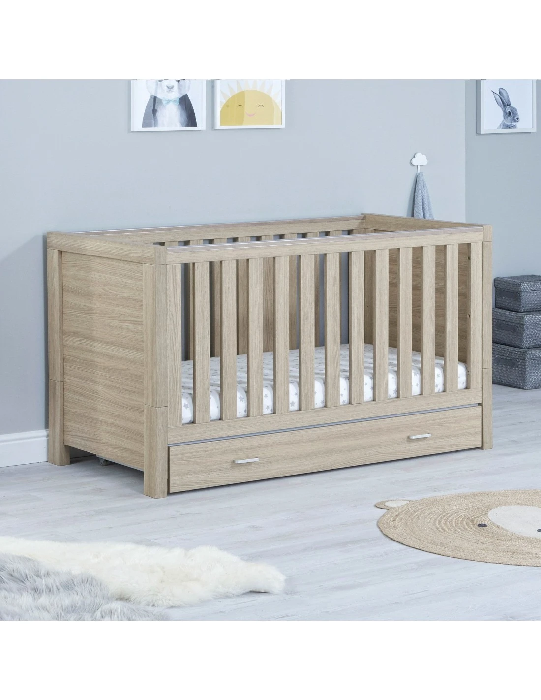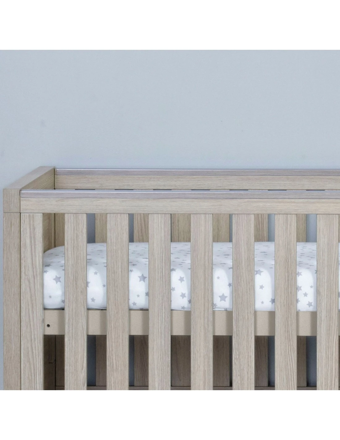 The Luno Cot Bed has three mattress positions. The highest allows you to pick up or put down your baby without placing too much pressure on your back. As your baby grows, you can easily lower the mattress position. There are also teething rails on either side to protect their delicate teeth and gums.