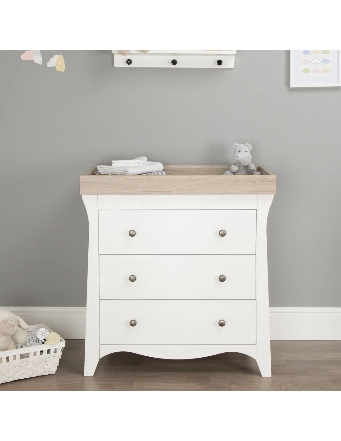 The Clara 3 drawer dresser & changer is designed to offer you style, storage and function with 3 spacious drawers and a removable changing station.