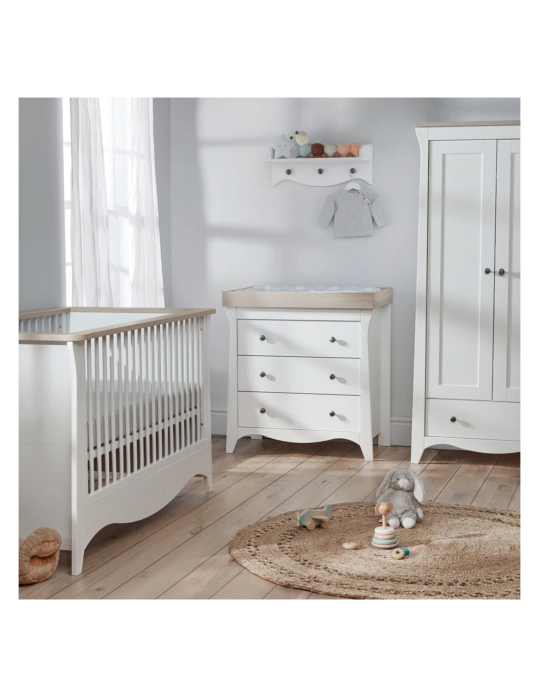 The Clara 2 Door Double Wardrobe is designed to help you successfully organize your nursery. Featuring two removable hanging rails to convert into a full-size wardrobe, a deep storage drawer and a handy shelving space, it’s classic styling will transform a modern nursery.