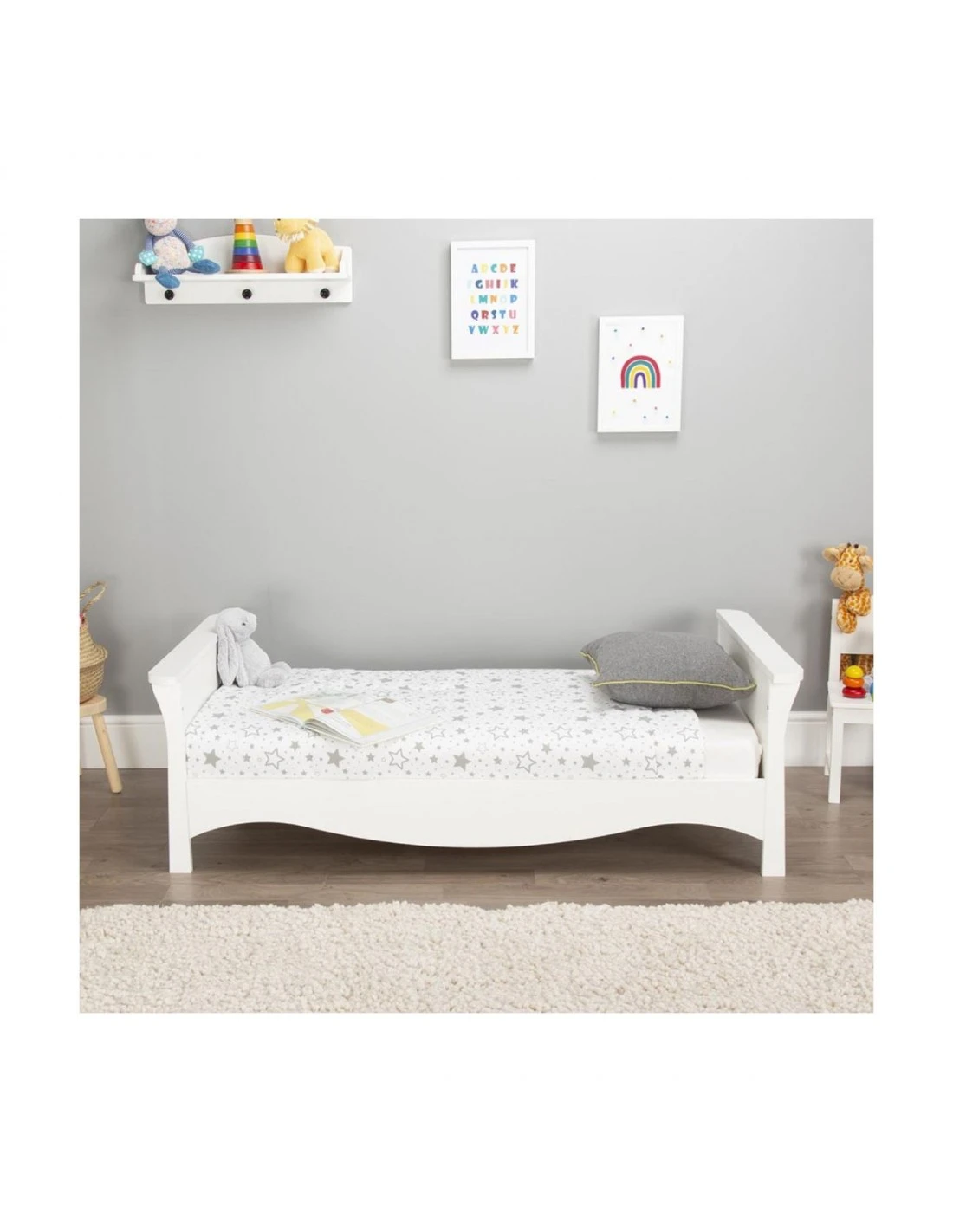 The cot bed is designed with three mattress positions and easily converts into a modern and stylish toddler bed, growing with the need of your little one through their formative years. This Clara cot bed has a matching wardrobe and changing unit.
