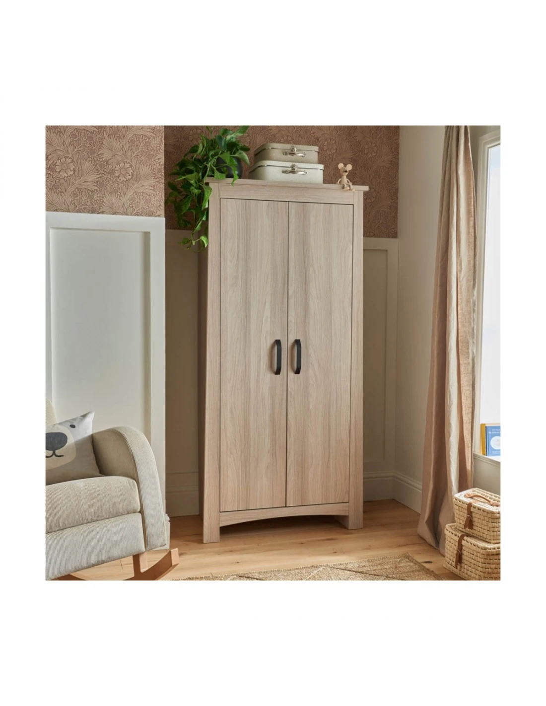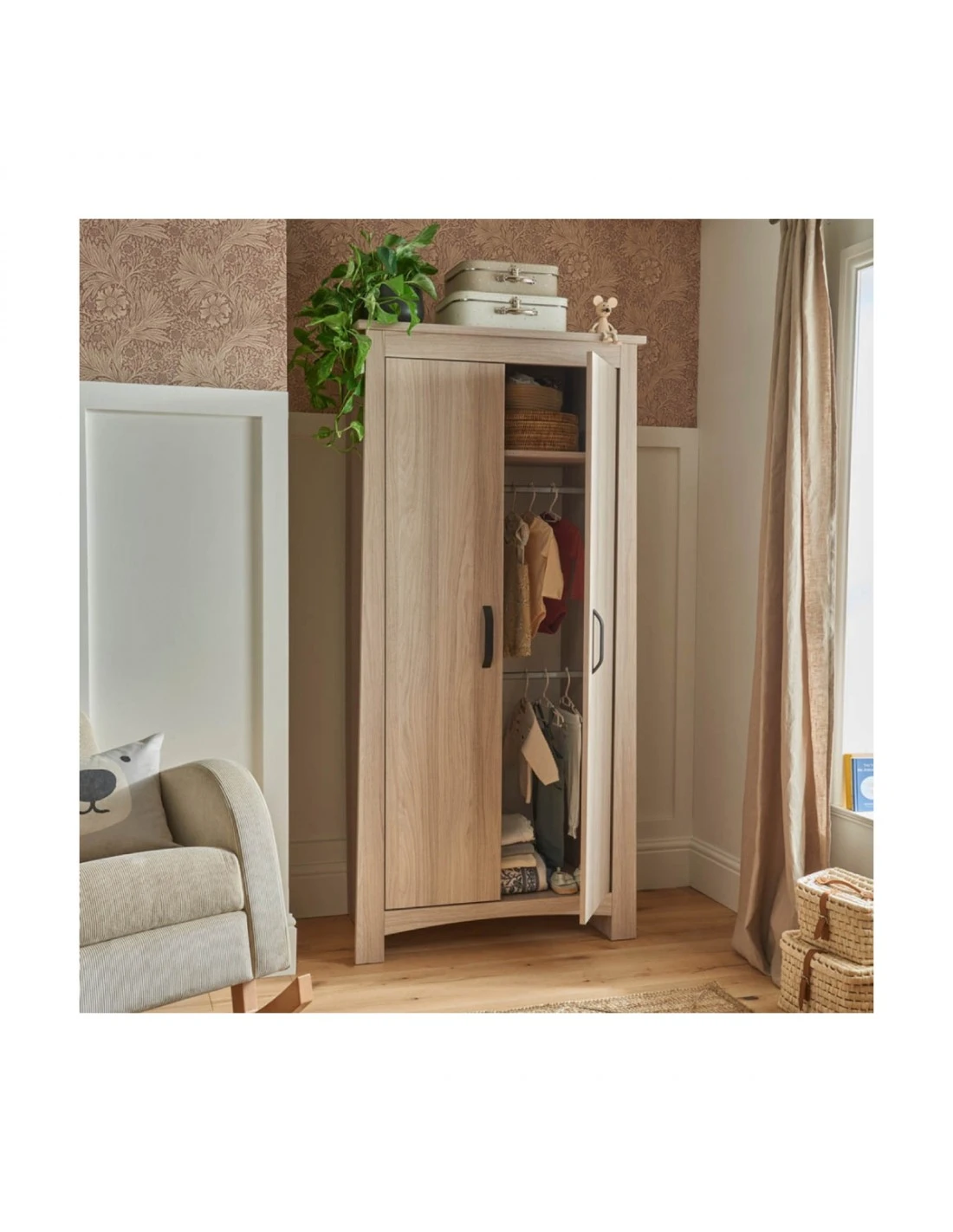 The Isla Nursery Wardrobe has enough storage to accommodate all your little one’s adorable outfits, coats and jackets. The double wardrobe has 2 removable hanging rails and a shelf. The wardrobe shelf can be used to store bedding and blankets. As your little one grows, so do their clothes. But not to worry, Isla can easily convert to a full-size wardrobe by removing one of the hanging rails.