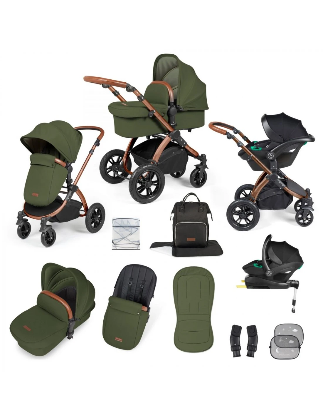 4 year warranty, raincover, pushchair, carrycot, car seat, isofix base, car seat adapters, changing bag & mat, seat liner, footwarmer, user guide