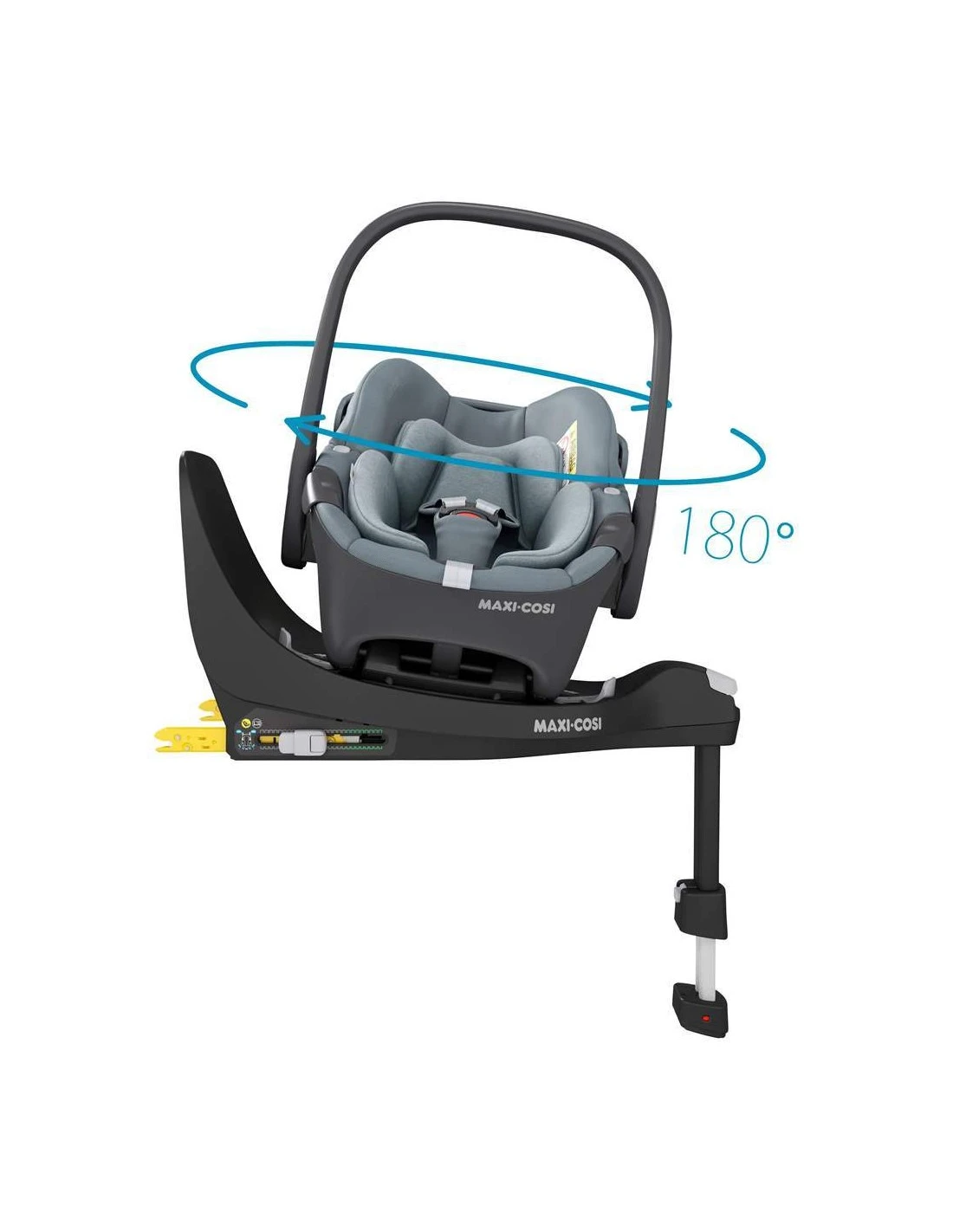 The Maxi-Cosi Pebble 360 can be used as a rotative baby car seat in combination with the FamilyFix 360 base (sold separately). Our FamilyFix 360 base is equipped with ISOFIX connectors and a support leg to provide the safest, easiest and quickest way of installing your car seat.