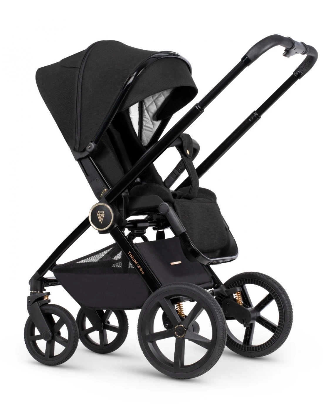 Additional suspension will pass its test in the most demanding terrains. Moreover, Front Wheels Support System supports the work of front wheels. Venicci Tinum Upline is equipped with a magnetic seat unit harness buckle, which means the harness can be fastened in a quick and simple way. All these functionalities along with beautiful and refined embellishments make this model stand out.