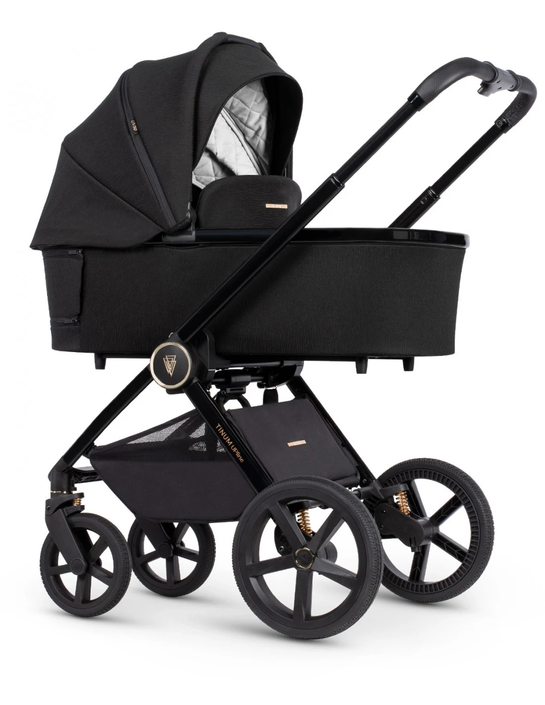 Additional suspension will pass its test in the most demanding terrains. Moreover, Front Wheels Support System supports the work of front wheels. Venicci Tinum Upline is equipped with a magnetic seat unit harness buckle, which means the harness can be fastened in a quick and simple way. All these functionalities along with beautiful and refined embellishments make this model stand out.